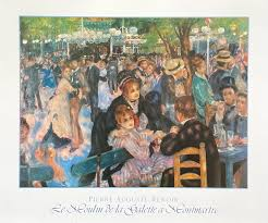 Montmartre is a very well-known neighbourhood; it is the 18th arrondissement on the right bank of the River Seine in Paris. It’s generally on tourist bus routes because of its art history. For example, Renoir’s famous images such as Bal du Moulin de la Galette (1876) depict community outdoor gatherings of working class people dancing during seismic economic shifts and the difficulty of the second industrial revolution.